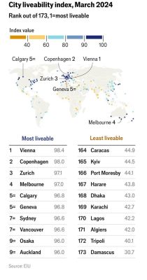 Вена снова признана самым комфортным для проживания городом в мире. Впервые европейский город победил в рейтинге еще в 2018. В 2019, 2022 и 2023 гг. Вена сохранила первое место.