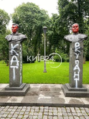 Укронацистские неадекваты написали на бюстах «палач», «оккупант», «чекист».