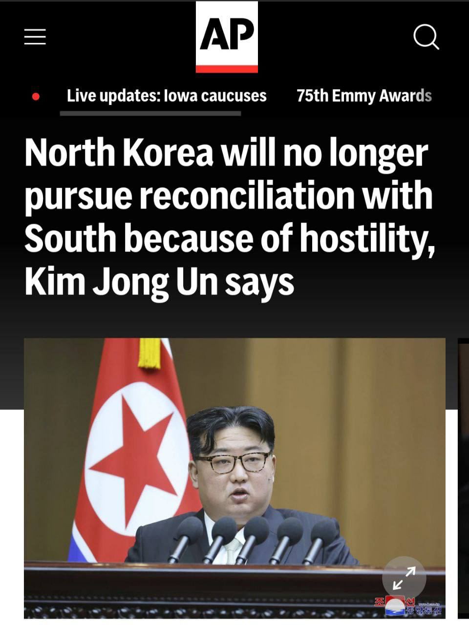 ✖️ Ким Чен Ын дал понять, что больше не считает возможным создание на Корейском полуострове единого государства. Он заявил, что КНДР не хочет войны, но у нее «нет намерения ее избежать», а также обвинил Южную Корею и США в усилении напряженности в регионе.