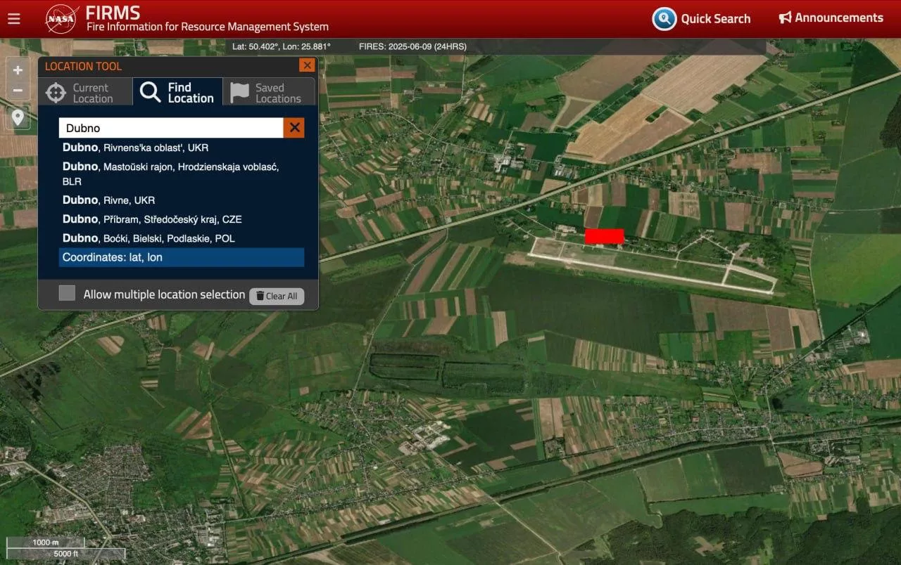 Снова сообщают в взрывах в Дубно, Ровенская область. Предварительно, это был второй за сутки удар по местному аэродрому – одному из ключевых объектов, где, по сообщениям, базировались поставленные НАТО истребители F-16.
