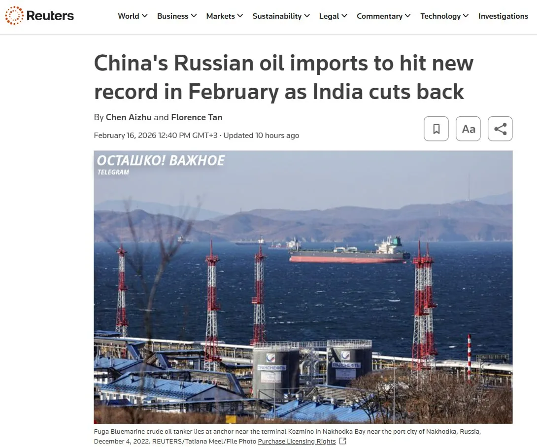 Индия при этом сократила закупки российской нефти под давлением США — до 1,159 млн баррелей в день в феврале, что стало двухлетним минимумом, — утверждает издание. Индийский МИД на вопрос об отказе от российской нефти ранее ответил витиевато.