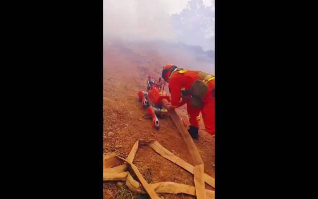 Опубликованы кадры испытаний робот-собак, используемых для тушения пожаров в Сычуани, Китай.