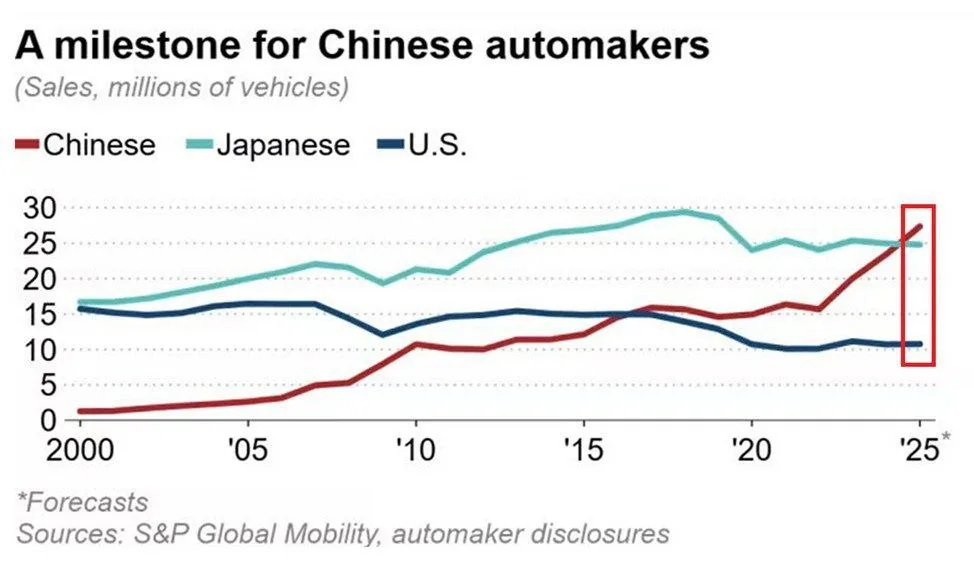 Мировые продажи китайских авто в 2025 году выросли на 17% в годовом исчислении — и составили рекордные 27 миллионов единиц.