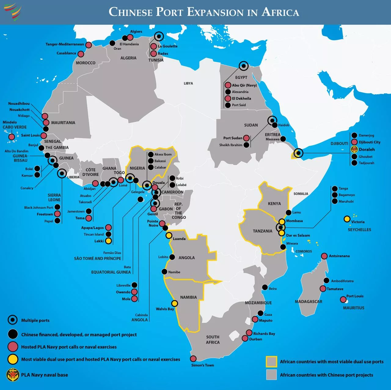 - Десятки портовых проектов, финансируемых Китаем, по всему континенту.