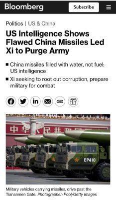 Среди последствий коррупции и взяточничества американские спецслужбы назвали ракеты, наполненные водой вместо топлива. Кроме того, шахтные пусковые установки на западе Китая не функционируют должным образом.