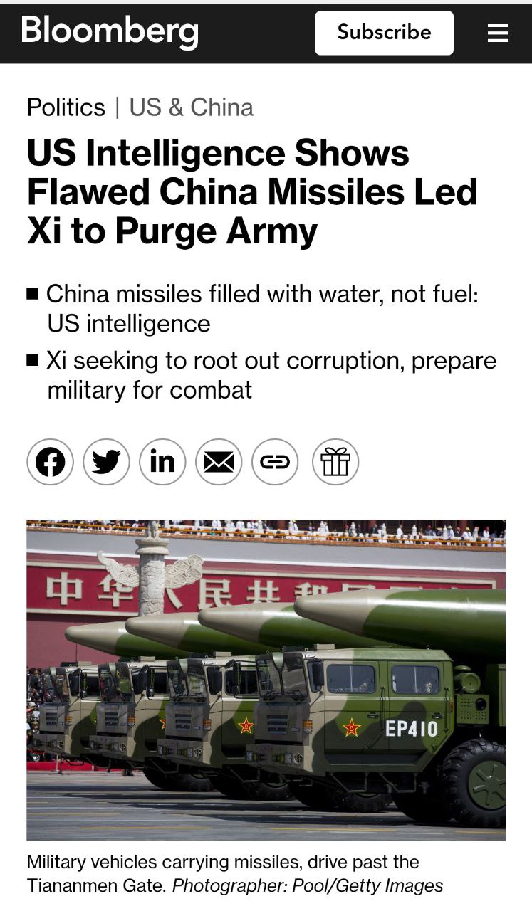 Повальная коррупция подорвала планы председателя КНР Си Цзиньпина по модернизации вооруженных сил и подготовке к ведению возможной войны, пишет Bloomberg. Случаи коррупции особенно часто встречаются в ракетных войсках и оборонной промышленности КНР.