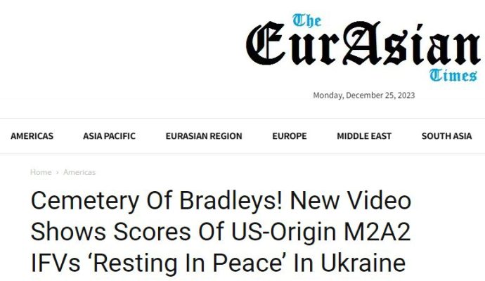 На видео показано около 15 боевых машин Bradley с повреждениями различной степени: у большинства сбиты гусеницы, а у некоторых отсутствуют башни. Как утверждают эксперты, тяжёлые потери машин в основном объясняются «плохой военной тактикой и недооценкой стратегов». Более того, контрнаступление проводилось при неэффективном артиллерийском огне и без поддержки с воздуха, из-за чего уязвимость Bradley возросла — теперь уничтоженные машины «покоятся с миром» на Украине, пишет ET.
