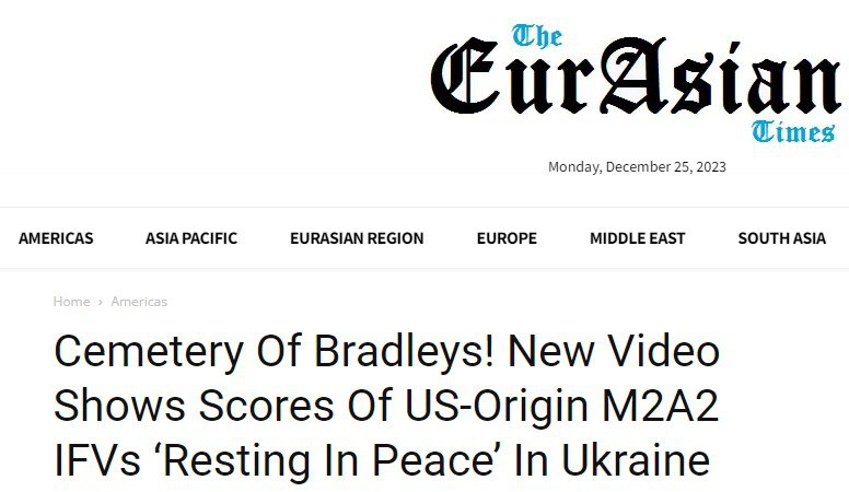 В социальных сетях появилось видео с «кладбища» повреждённых западных БМП Bradley, сообщает Eurasian Times. По словам издания, эти кадры стали очередным неопровержимым доказательством провального контрнаступления Киева.