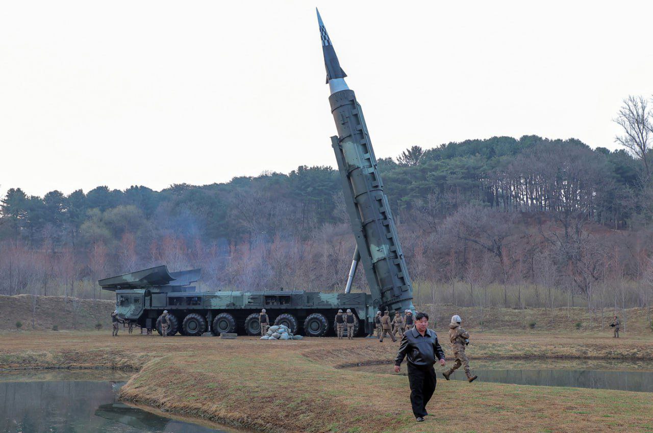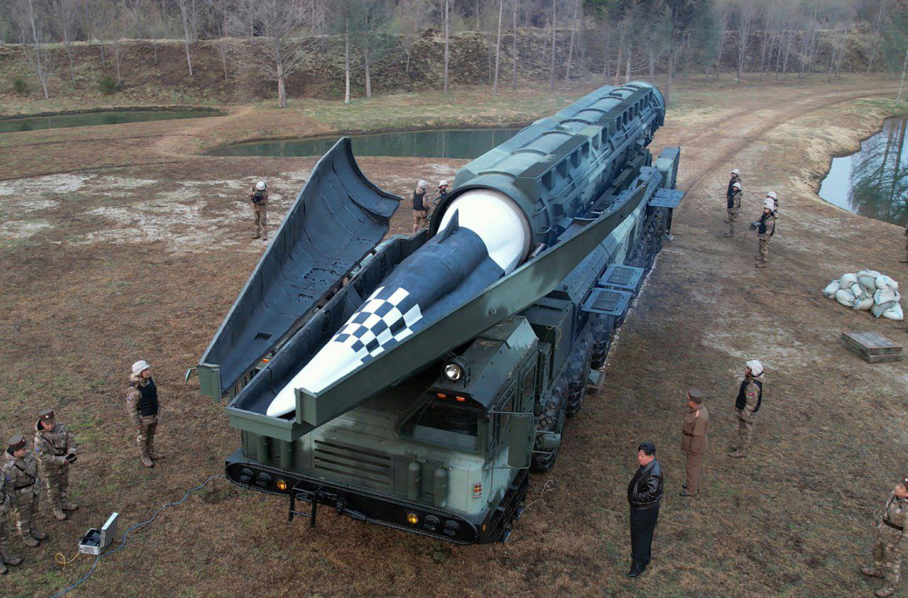 Твердотопливная баллистическая ракета «средней и большой» дальности «Хвасонпхо-16на» с гиперзвуковым боевым блоком перед запуском, 2 апреля 2024 г.