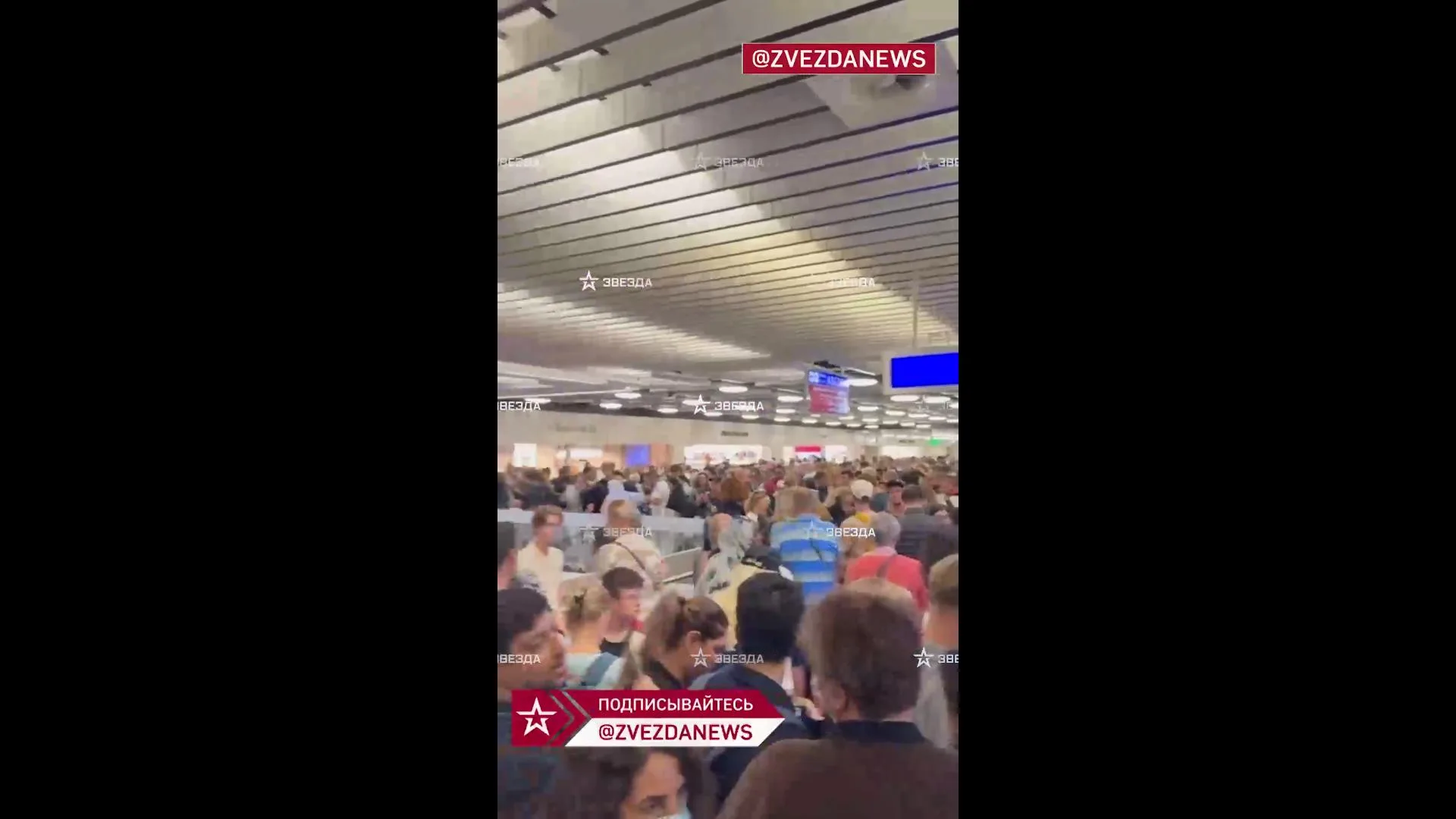 Уже около двух часов самолеты не отправляют и не принимают, передает наш корреспондент. Плечом к плечу тысячи людей застряли в одном помещении.