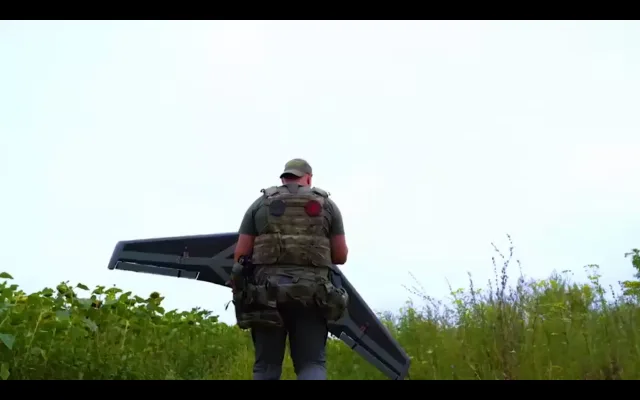 По целям противника в харьковской области наши расчеты применяют ударные БпЛА «Черника-2». Беспилотник выполнен по аэродинамической схеме «монокрыло» и способен поражать цели на расстоянии до 50 км.
