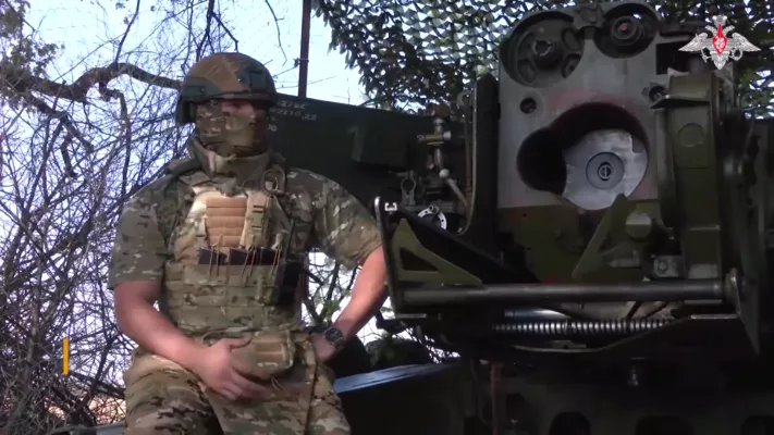 Артиллеристы в считанные минуты развернули орудие, рассчитали координаты и точным попаданием уничтожили склад. Расчет БпЛА зафиксировал поражение и детонацию боеприпасов.