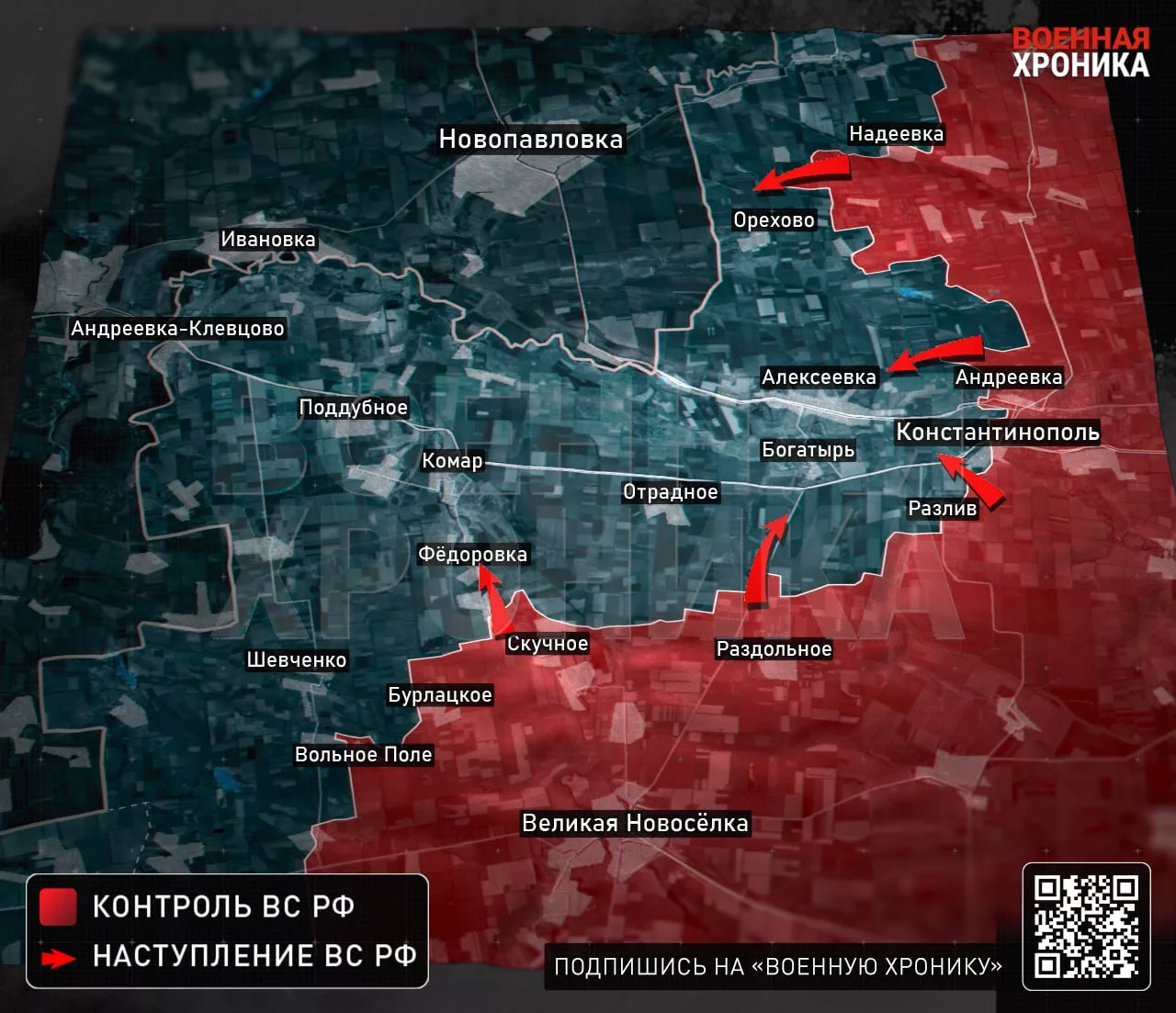 Выбор направления дальнейшего давления будет зависеть от оперативной обстановки, устойчивости логистического плеча, насыщенности ПВО и наличия резервов (в том числе и техники). Очевидно одно: потеря Разлива и развал укрепрайона вокруг него меняют конфигурацию всего участка фронта к западу от Курахова, создавая новые уязвимости для ВСУ, для которых удержание протяжённого участка фронта сопряжено с большим расходом ресурсов.