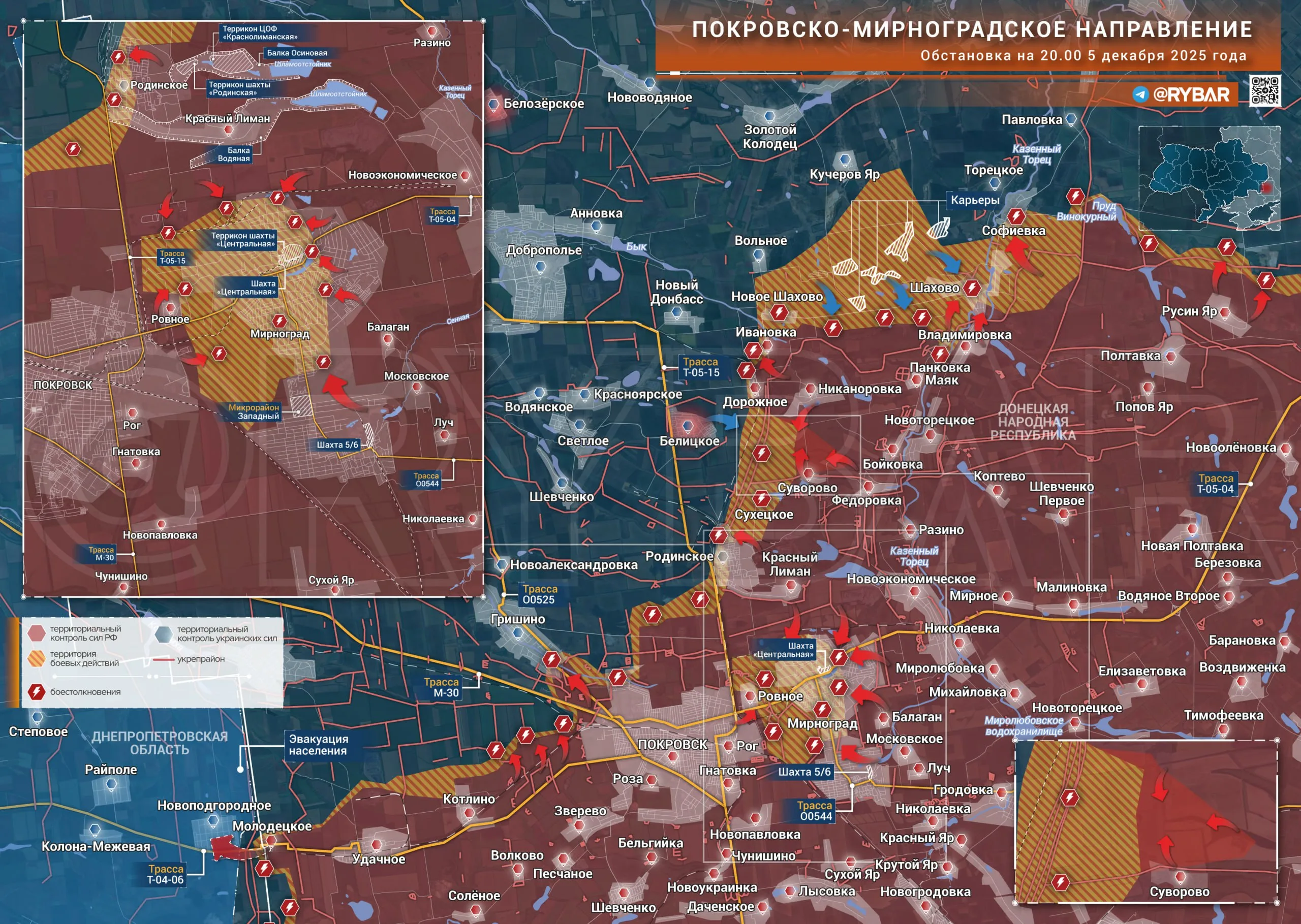 На западном фланге продолжаются бои за Гришино: ранее противник проводил атаки на Покровск именно через этот населенный пункт, и концентрация украинской живой силы там остается пока довольно высокой.