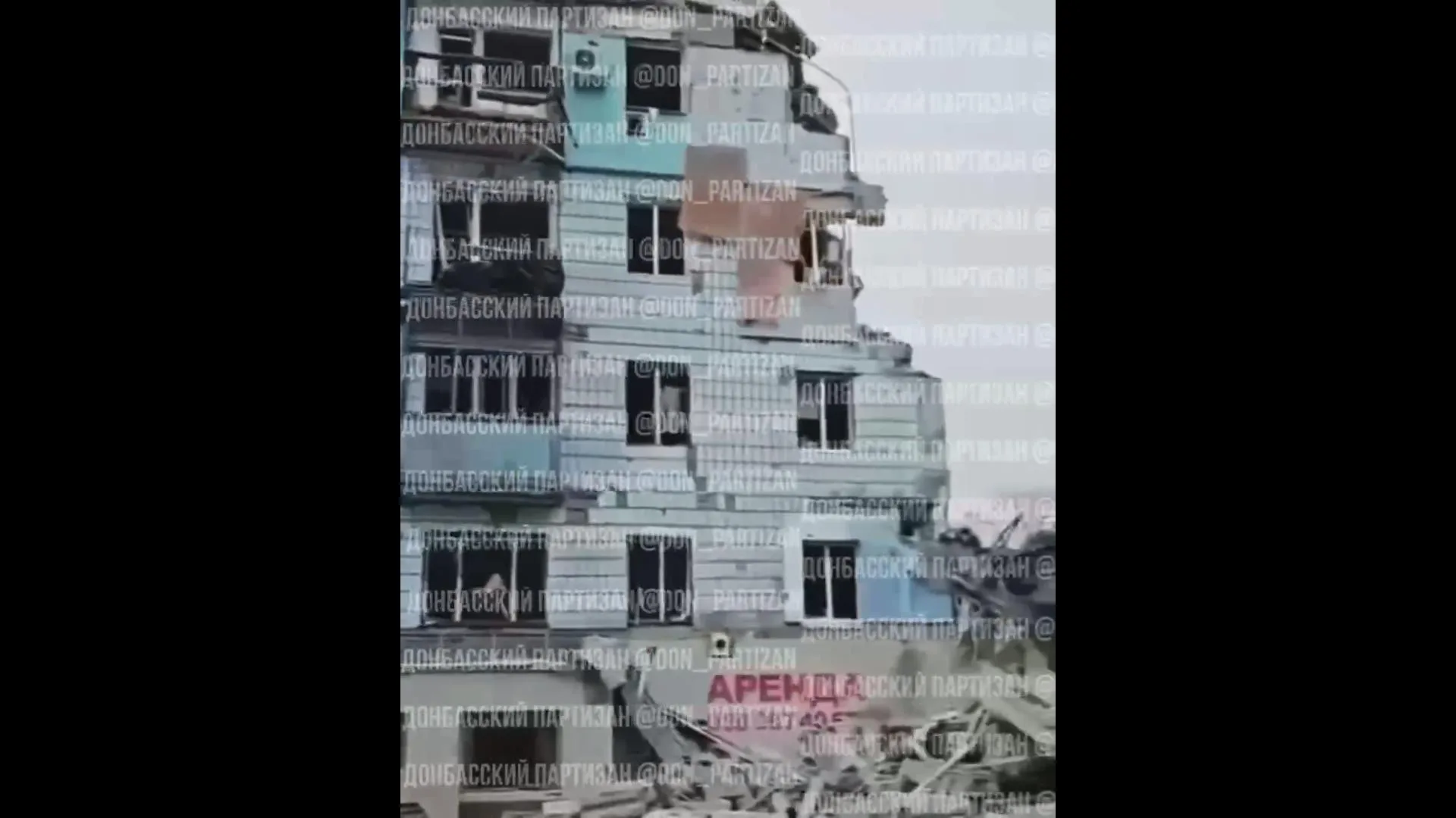 Прямое попадание зафиксировано в многоквартирный дом по пл. Победы, 13. Взрывной волной повреждён фасад здания и расположенный напротив торговый центр «Детский мир».