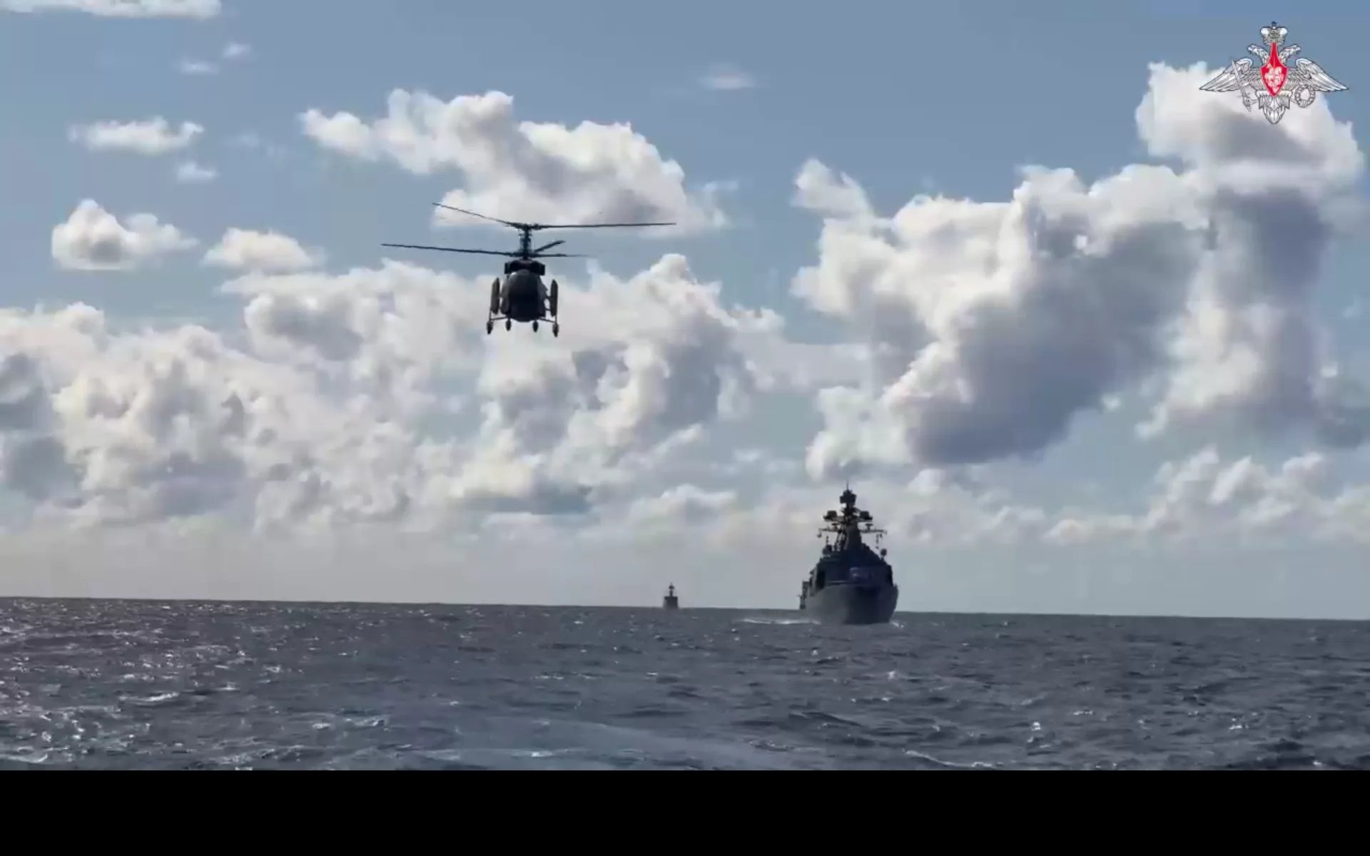 Тактическая группа боевых кораблей провела маневрирование и построение походного ордера в целях организации противолодочной обороны. Для поиска субмарины условного противника был задействован противолодочный вертолёт Ка-27ПЛ.