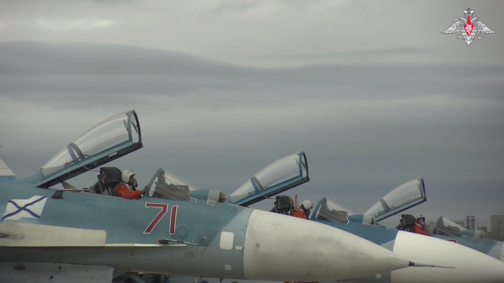Морякам противодействовали лётчики корабельных истребительных авиаполков на палубных истребителях Су-33 и МиГ-29К. Они имитировали атаку кораблей с различных высот и направлений.