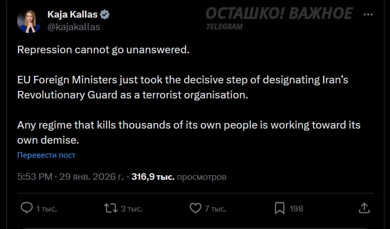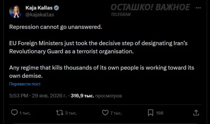 Об этом сообщила глава евродипломатии Кая Каллас в 𝕏: