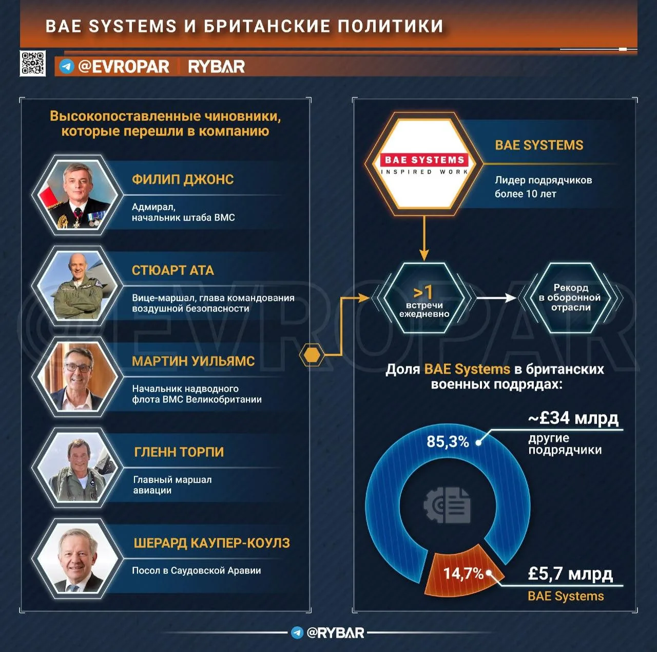 Такой масштабный синтез частного капитала и государственных программ формирует основу британской военной индустрии, где коммерческие интересы и политическая воля тесно переплетены. Это создает условия, в которых контракты, лоббизм и карьерные переходы явно превалируют над демократическими принципами.