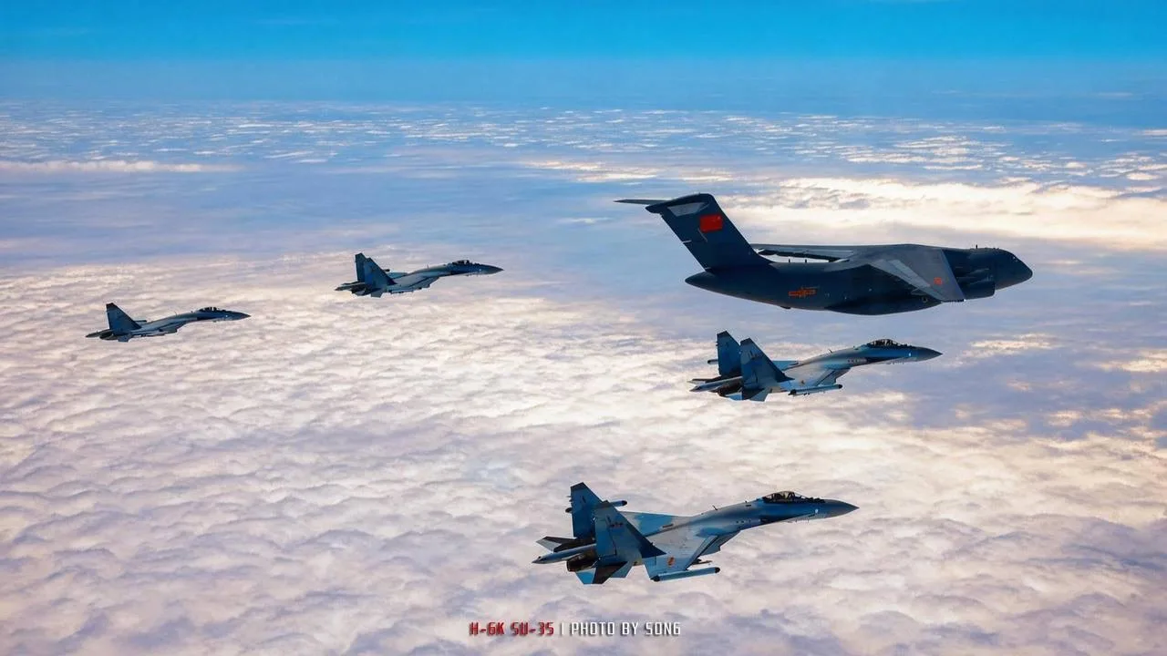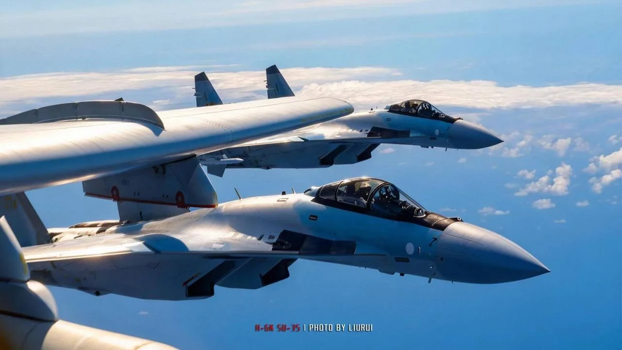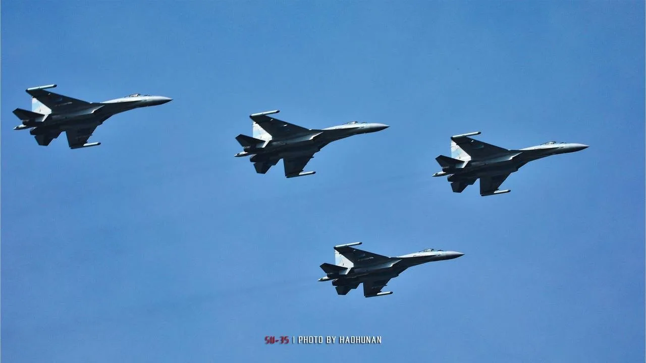 На всех истребителях наблюдаем установленные контейнеры комплекса постановки активных помех Л-265М10 комплекса РЭБ «Хибины-М» на законцовках крыла.
