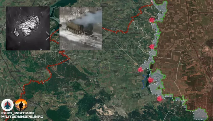 Вдоль линии соприкосновения продолжаются ожесточённые боевые действия. Подразделения ВС РФ развивают наступление в районе Новолюбовки и Макеевки, где противник оказывает сопротивление, используя сложный рельеф местности и инженерные заграждения.