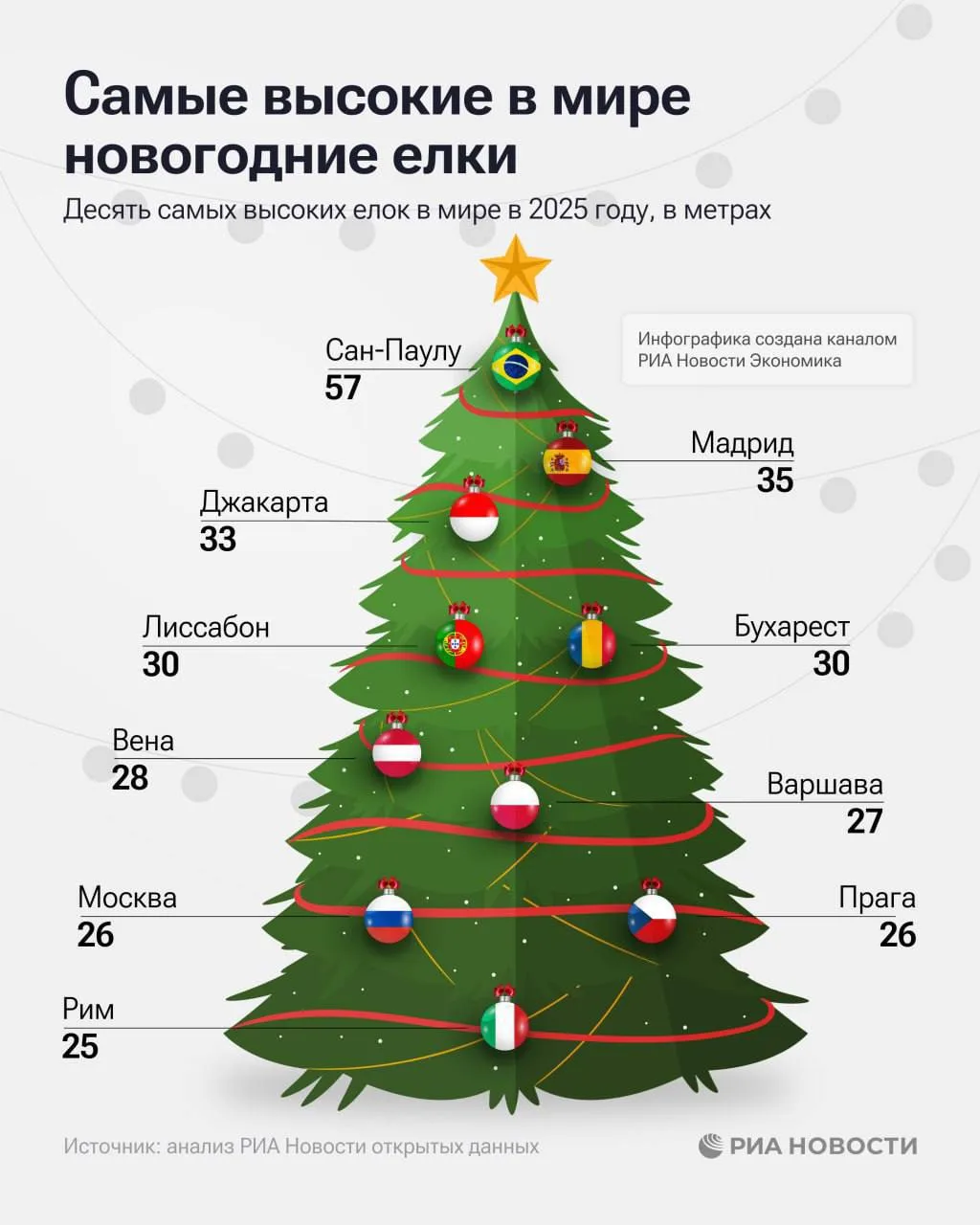 Её высота составляет 26 метров. Лидируют в рейтинге ели из Бразилии — 57 метров, Испании — 35 метров и Индонезии — 33 метра.