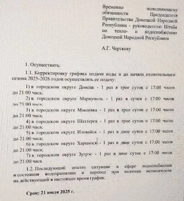 В ДНР вводится новый график водоснабжения в связи с резким снижением уровня воды в водохранилищах. Об этом сообщил и.о. председателя правительства Андрей Чертков.
