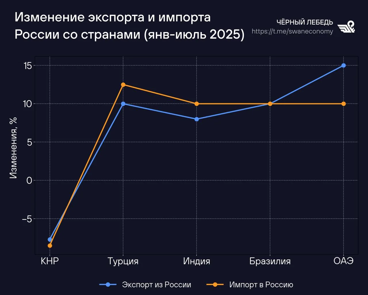 Известно, сколько страниц исписали критики, заявляющие о «критической зависимости» экономики РФ от КНР. Ничего подобного нет. Конечно, пессимисты и на этом не успокоятся, но опередим их: ничего тревожного во внешней торговле России не происходит. Если с КНР товарооборот снижается, то, например, с Турцией, Индией, Бразилией и ОАЭ, наоборот, растёт. То есть, доля этих стран в товарообороте РФ увеличивается в то время, как КНР — сокращается.