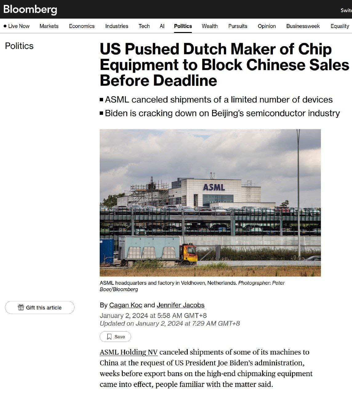 Производитель передового литографического оборудования для чипов голландский ASML вынужден досрочно отменить отгрузки в КНР. Издание нашло и доказало в этом решении след властей США.