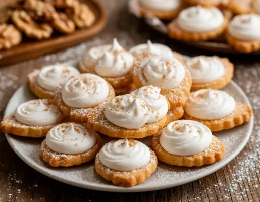 Это не просто выпечка, а настоящая кулинарная одиссея: хрустящая ореховая меренга, обернутая в тающее во рту песочное тесто, которое формируется в изящные розочки. Готовьтесь удивлять — и себя, и ваших гостей.