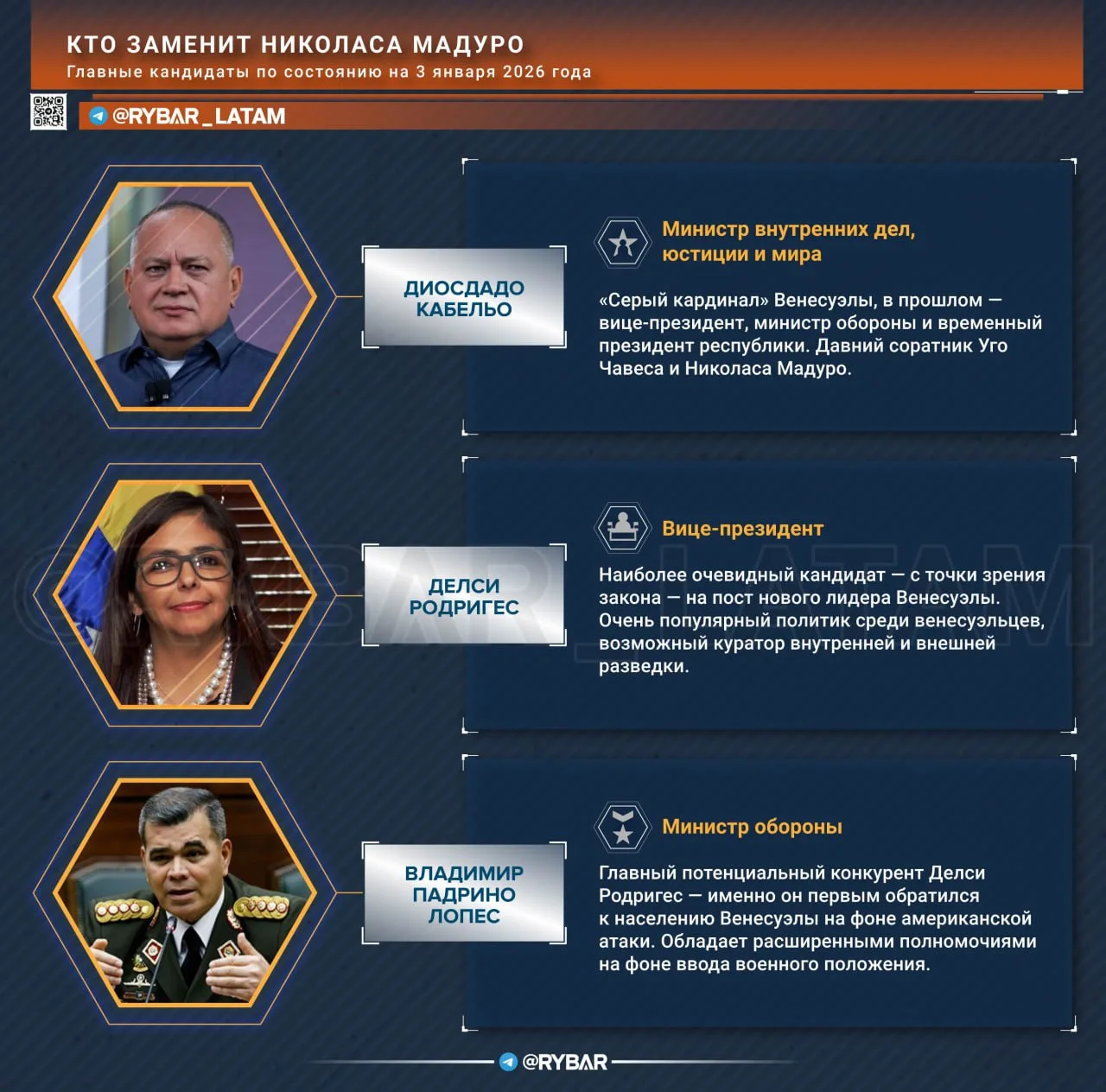 В условиях де-факто «обезглавливания» Венесуэлы вопрос преемника является первостепенным: тот, кто сможет занять место Мадуро, повлияет на очень многие процессы внутри Боливарианской республики и ее внешней политики.