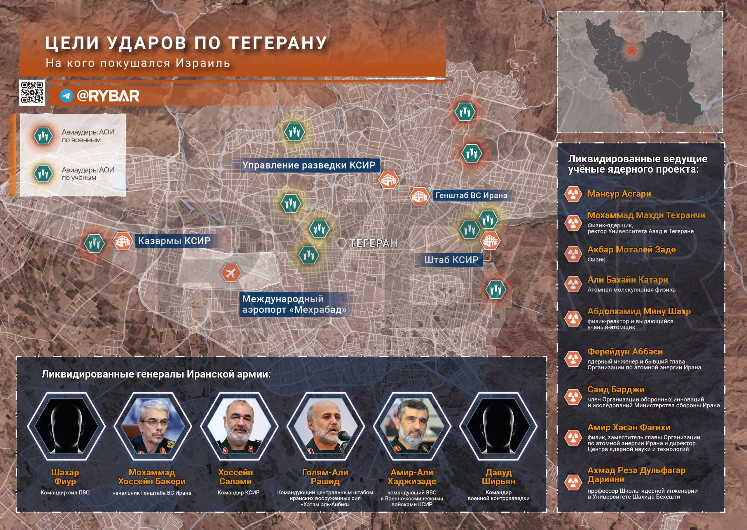 - Хоссейн Салами, главком КСИР, и Амир-Али Хаджизаде, командующий ВКС КСИР, также, по израильской версии, погибли.