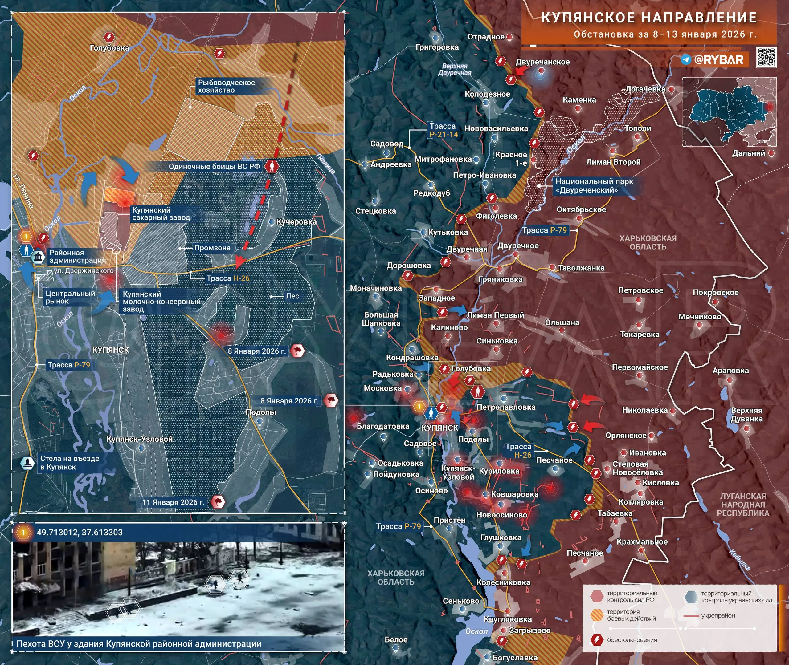 ➡️На восточном берегу Оскола обстановка так же тяжелая. С этого участка продолжают поступать кадры, на которых бойцы ВС РФ поднимают государственные флаги над Подолами. При этом, по имеющимся данным, о контроле над населенным пунктом речи не идет. Единичные «флагоносцы» прошли в село через лесной массив со стороны Синьковки.