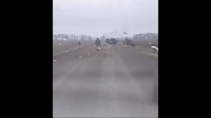 Развертывание артиллерии на трассе и украинская колонна, попавшая под удар.