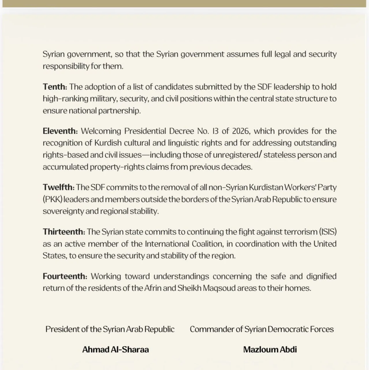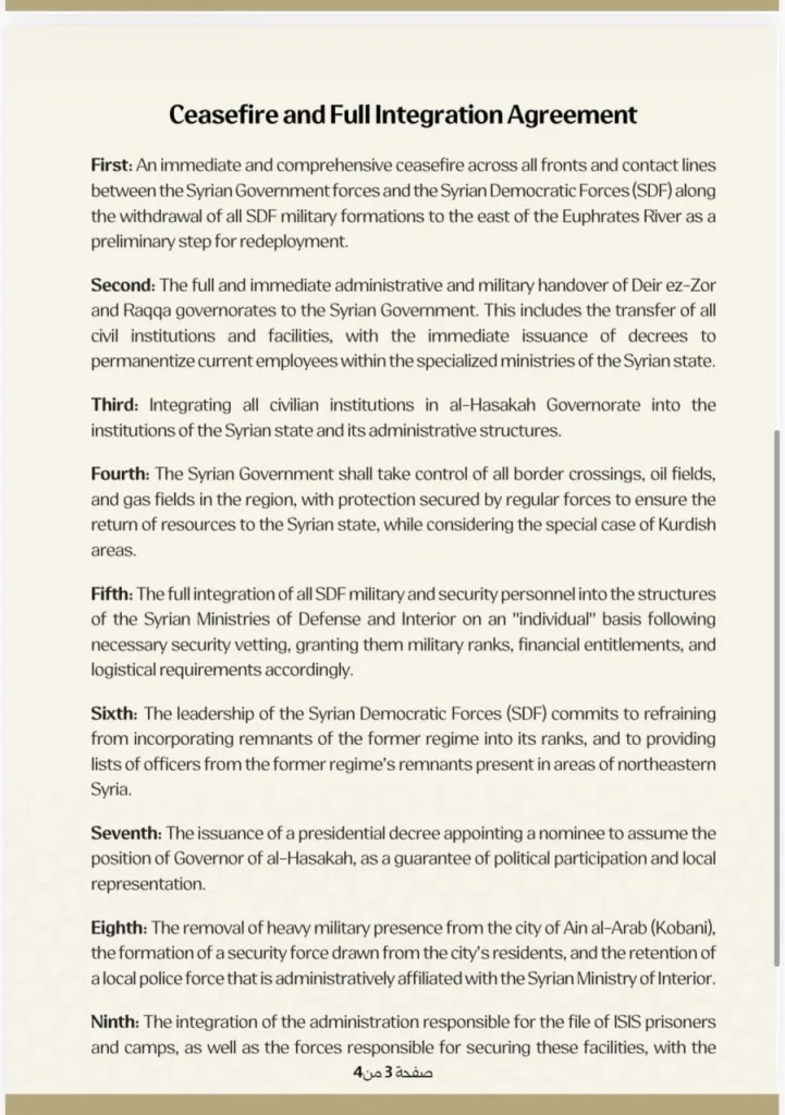 Кроме того, после падения власти Асада в 2024 году, на курдских территориях укрылось множество служивших ему сирийских солдат, полицейских, спецслужбистов и ополченцев. Заключенное соглашение теперь обязывает СДС выдать сирийским властям как минимум всех их офицеров, с понятными для тех последствиями.
