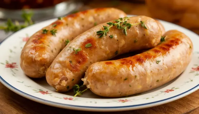 - Варить при температуре 78-82°C до достижения внутренней температуры 70°C (примерно 1-1,5 часа, в зависимости от толщины колбасок).