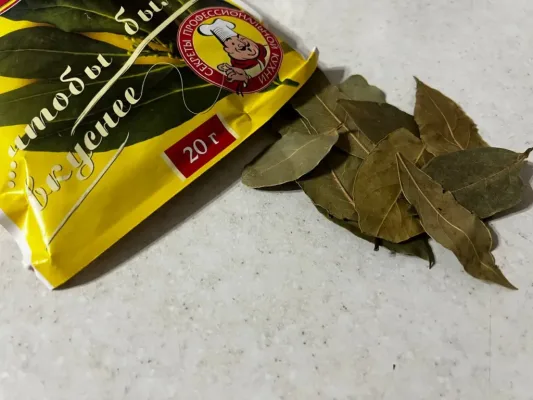 - 3–4 сухих лавровых листа.