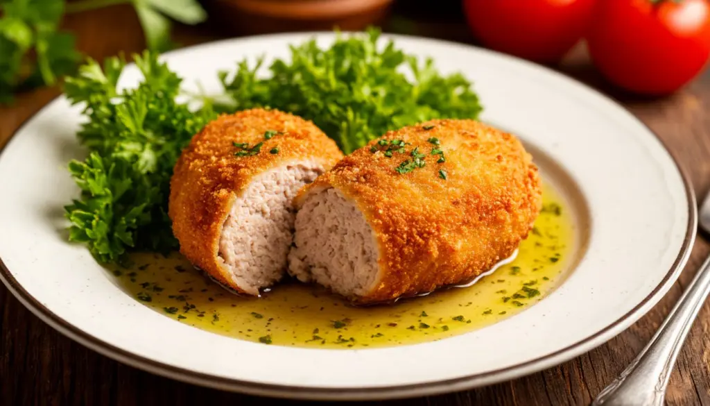 Классические котлеты по-киевски выглядят красиво, но их приготовление требует много усилий. Нужно отбивать мясо, аккуратно заворачивать масло, панировать в несколько этапов… Чувствую усталость, даже читая рецепт.