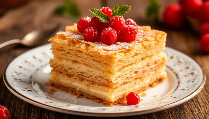 Основу составляют готовое слоёное тесто и крем из двух компонентов, а конечный результат выглядит так, словно вы провели на кухне целый день.