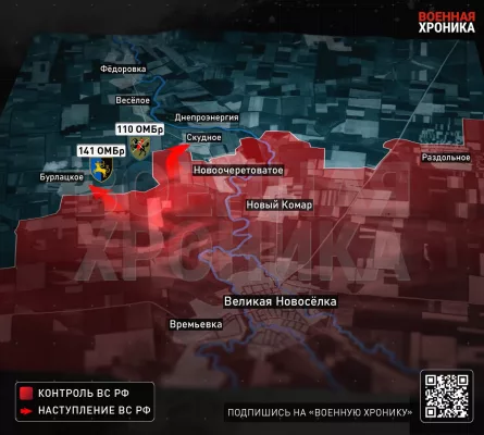 Штурмовые подразделения 5-й армии группировки «Восток» совершили успешный наступательный бросок со стороны автодороги Времевка — Гуляйполе к Бурлацкому. Глубина продвижения составила порядка 4 км, ширина по фронту — порядка 5 км. Примечательно, что речь идёт о вытеснении формирований 110-й и 141-й отдельных механизированных бригад ВСУ из кармана площадью около 12 кв. км. Это на 30% больше площади всей Великой Новосёлки.