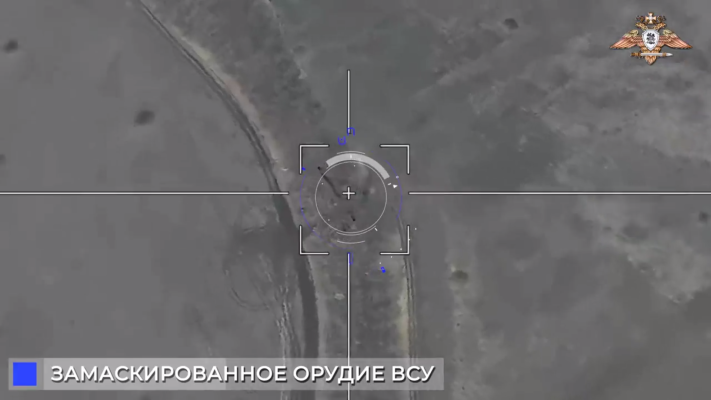 Ударно-разведывательная батарея 238 артиллерийской бригады ВС РФ активно применяет барражирующий боеприпас «Ланцет» для уничтожения замаскированных орудий противника. В этот раз маскировка орудия ВСУ не помогла избежать удара, который уничтожил как орудие, так и стрелявших из него украинских боевиков.