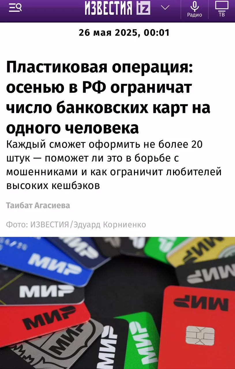 Ограничения введут в сентябре. Один человек сможет оформить не более 20 карт, а в одном банке — максимум 5.
