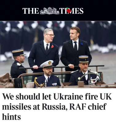 Об этом пишет The Times. Начштаба британских ВВС Ричард Найтон заявил, что Украине надо наносить удары по целям на территории России ракетами большей дальности британского производства, если она хочет противостоять бомбардировкам Москвы.