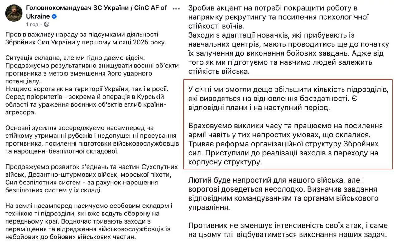 «В январе мы смогли несколько увеличить количество подразделений, которые выводятся на восстановление боеспособности. Есть соответствующие планы и на следующий период».