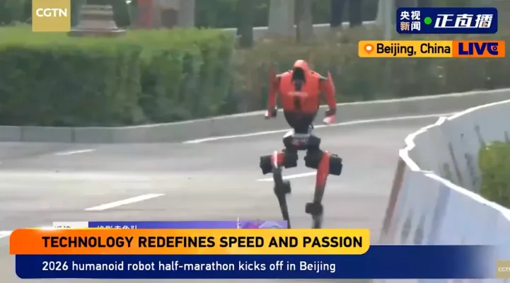 В Пекине робот по кличке «Молния» пробежал 21,1 км за 50:26 — на шесть минут быстрее действующего мирового рекорда среди людей (56:42). В забеге участвовали 12 000 человек и более 300 роботов.
