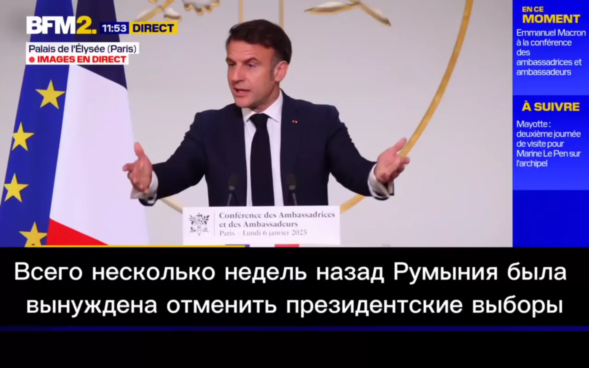 Макрон вспомнил выборы в Румынии, в которые якобы «вмешалась РФ», а также беспорядки в Новой Каледонии «при поддержке Баку». Маска он обвинил во влиянии на выборы в Германии.