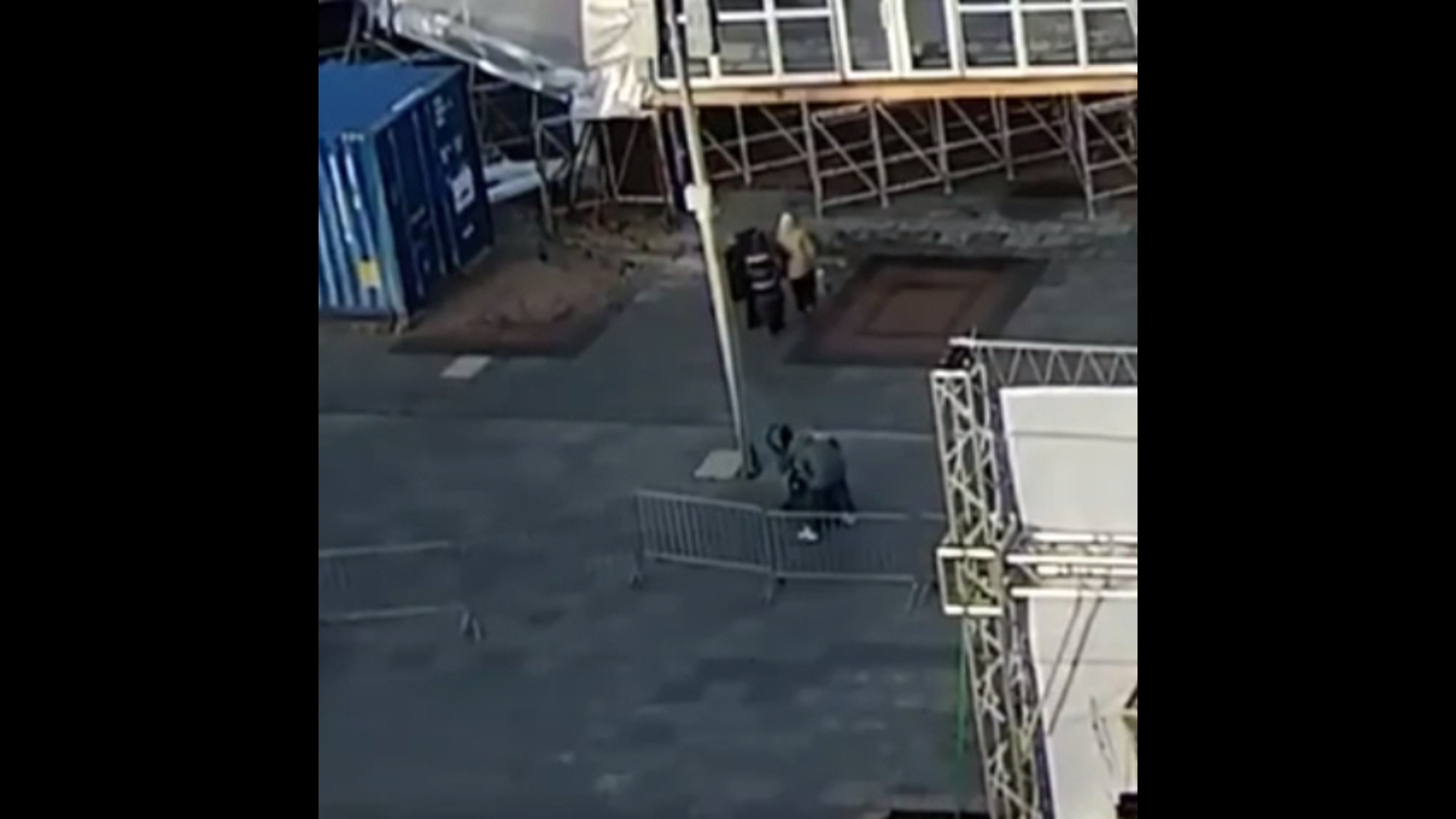 На кадрах видно, как в момент террористической атаки женщина хватает обеими руками детей и бежит прочь от зоны поражения, бросив коляску. Другие люди следуют её примеру.