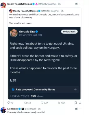«Зеленский убил американского журналиста», — написал он в соцсети Х.