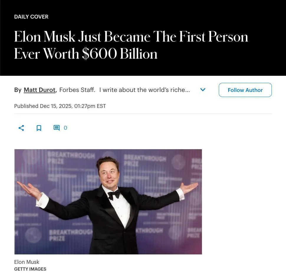 Состояние бизнесмена увеличилось из-за роста капитализации Tesla, SpaceX и xAI.