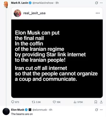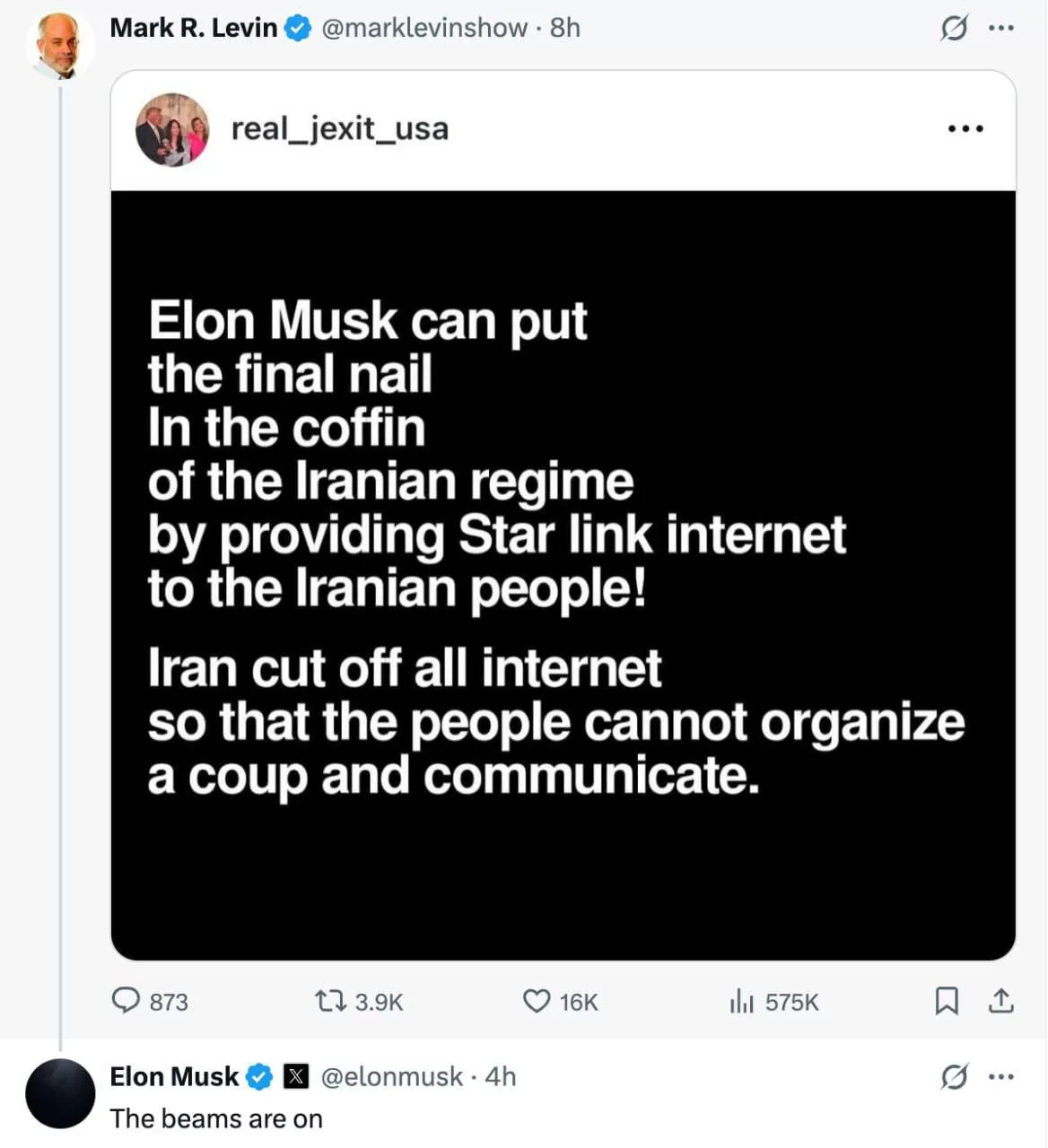 Эти слова наблюдатели расценили как сигнал о том, что спутниковая сеть Starlink уже активна над Ираном.